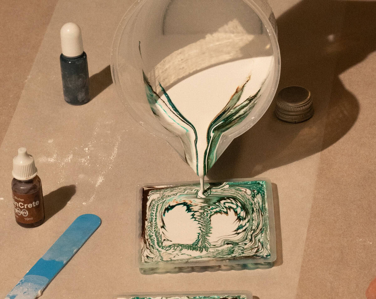 Participants work with eco-friendly resin to design and pour their own creations, choosing from moulds such as trinket dishes, jewellery trays, candle holders, little boxes, mirrors, and mini plant pots — perfect for every taste and style.