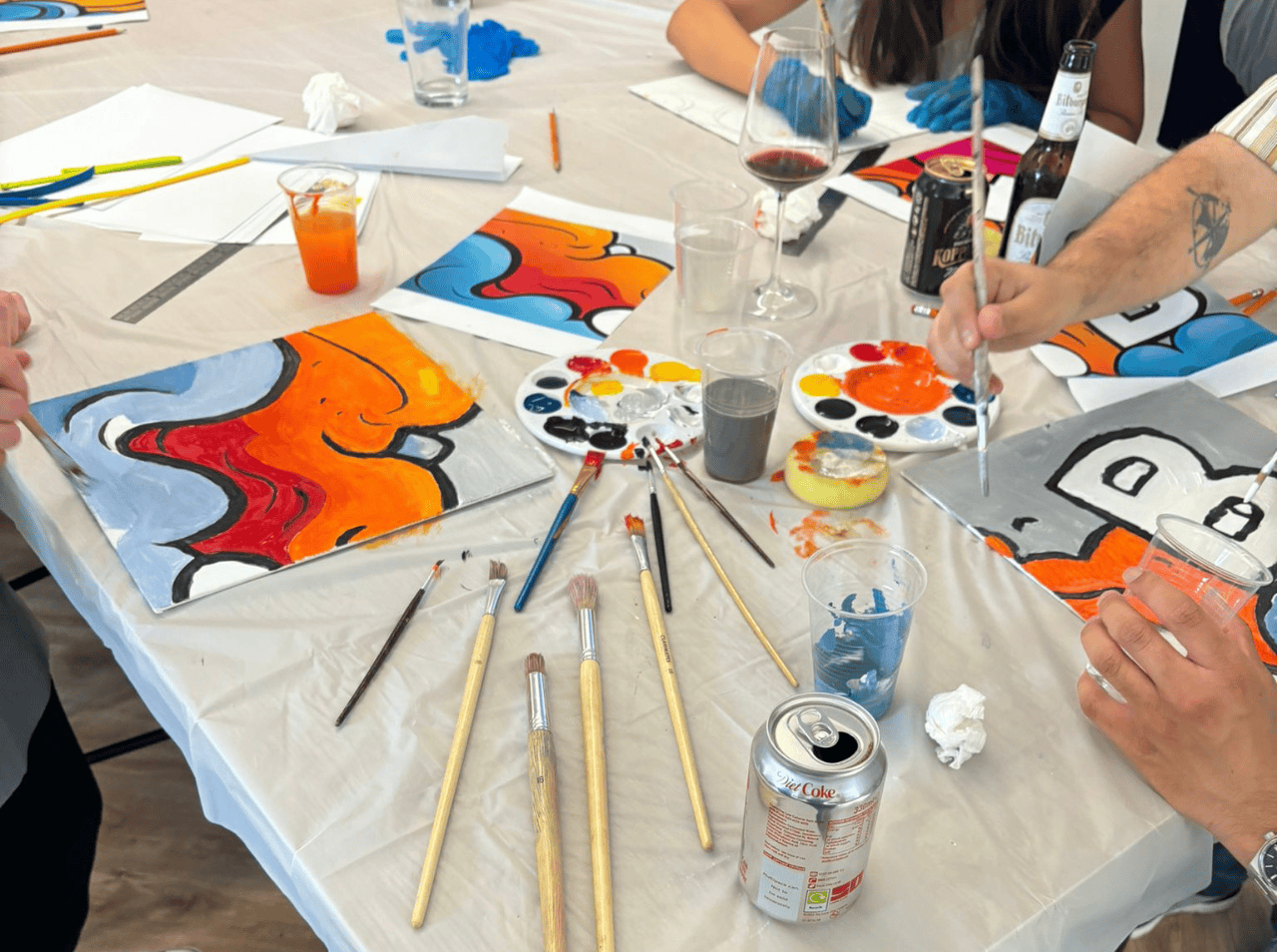 Teams use non-toxic, washable acrylic paint, and protective clothing is provided. The event concludes with teams coming together to assemble the final piece of art, often resulting in hilarious and memorable moments.